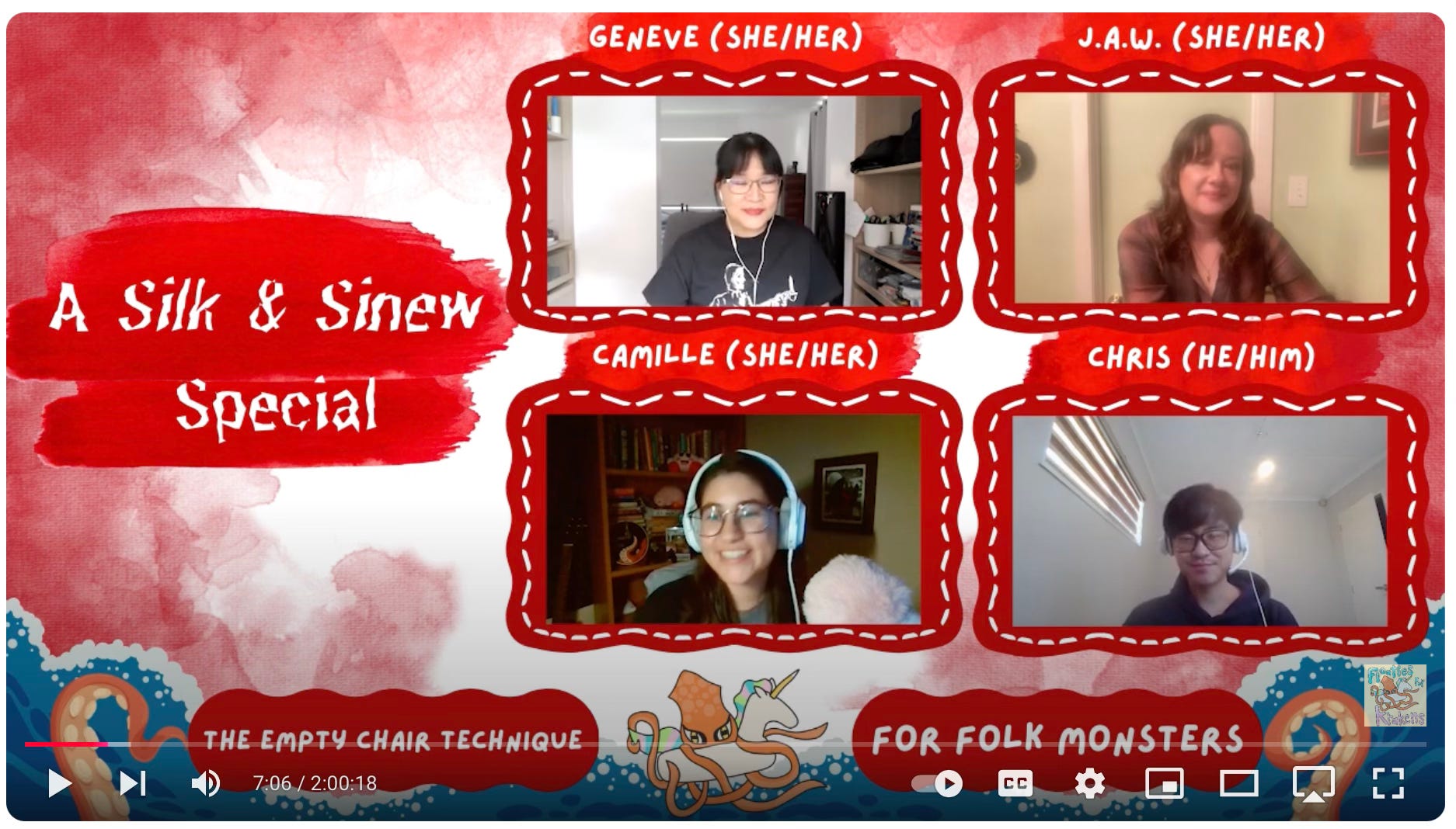 Season 3: Episode 10 of Floaties for Krakens features Silk & Sinew authors Geneve Flynn, Christopher Hann, and me. We had a wonderful time with host Camille Maria Acosta discussing monsters from our respective cultural folklores. I talk about my beloved Mae Nak (the Thai “monster” I will forever defend), spirit houses, and how much I hate the model minority myth. These subjects are all part of my contribution to the anthology, “Guilt is a Little House.” It was a truly fun and illuminating conversation, and I learned so much about Geneve’s and Christopher’s fascinating monsters (and what Geneve’s grandmother kept in her purse!). Much gratitude to Kristy for gathering us and Camille for hosting us.